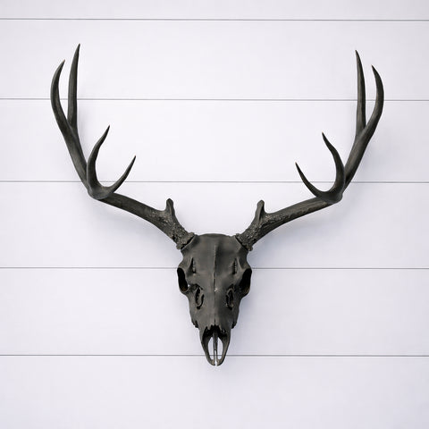 The antlers were digitally scanned from authentic Mule Deer specimens, preserving realistic curves, tine structure, and natural asymmetry found in real European mounts. Paired with a clean, sculptural skull form, this piece delivers the presence of real taxidermy while remaining ethical, cruelty-free, and maintenance-free.