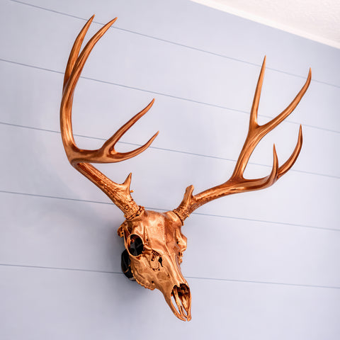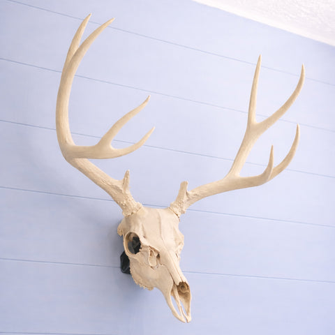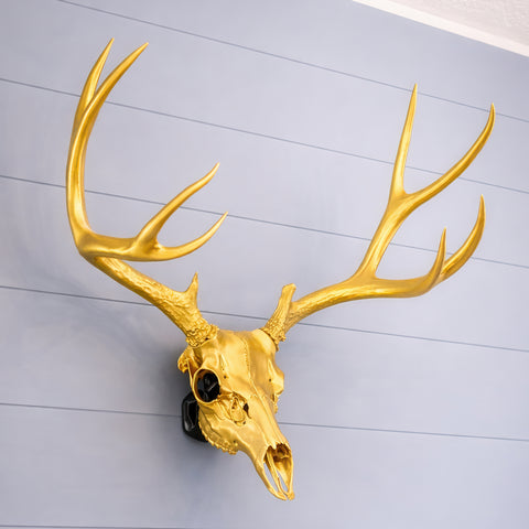 This Life Size Deer Skull & Antlers Wall Mount Replica features highly detailed, 3D-scanned replicas of real Mule Deer antlers, capturing natural shape, texture, and scale with exceptional accuracy.